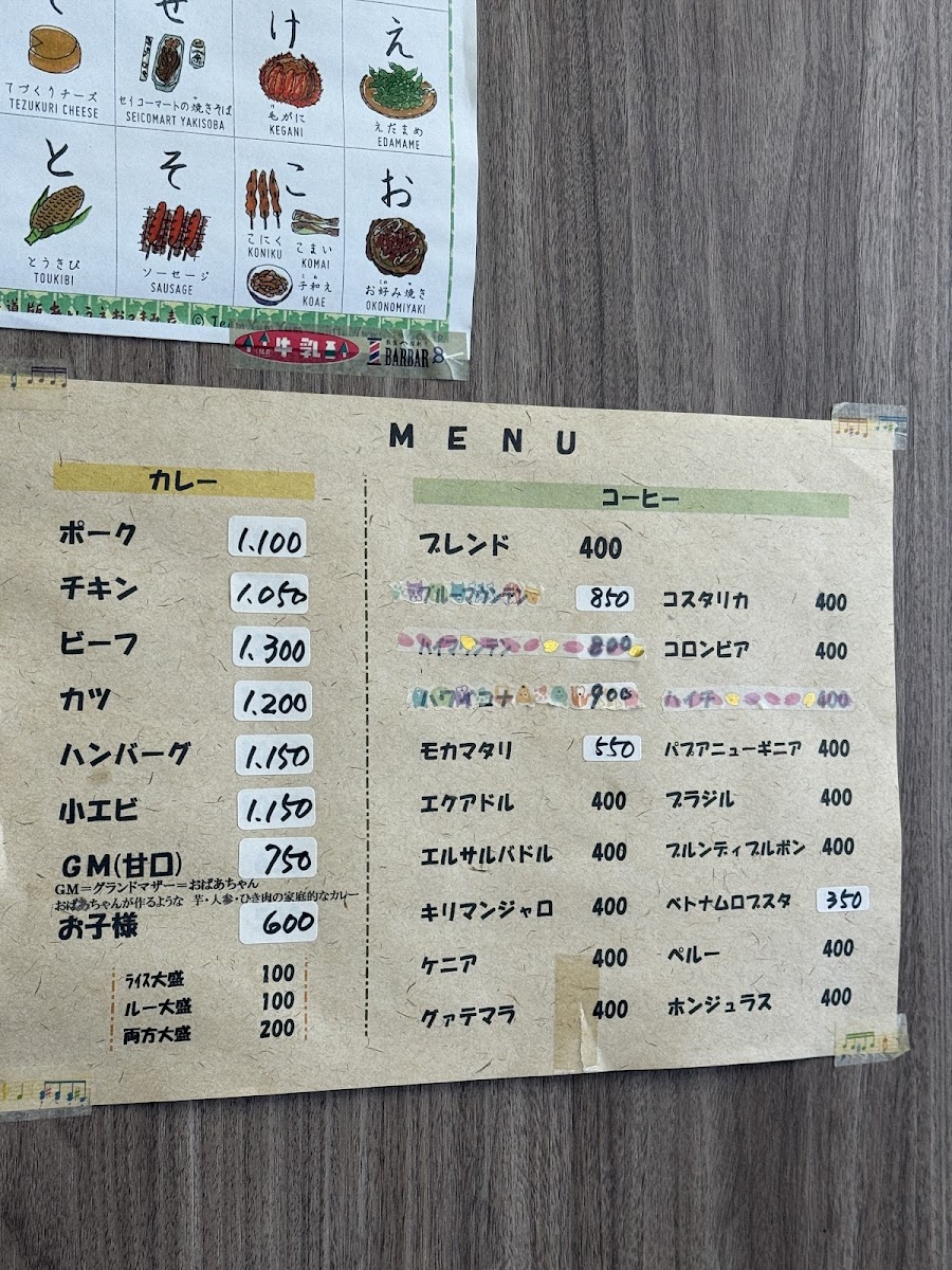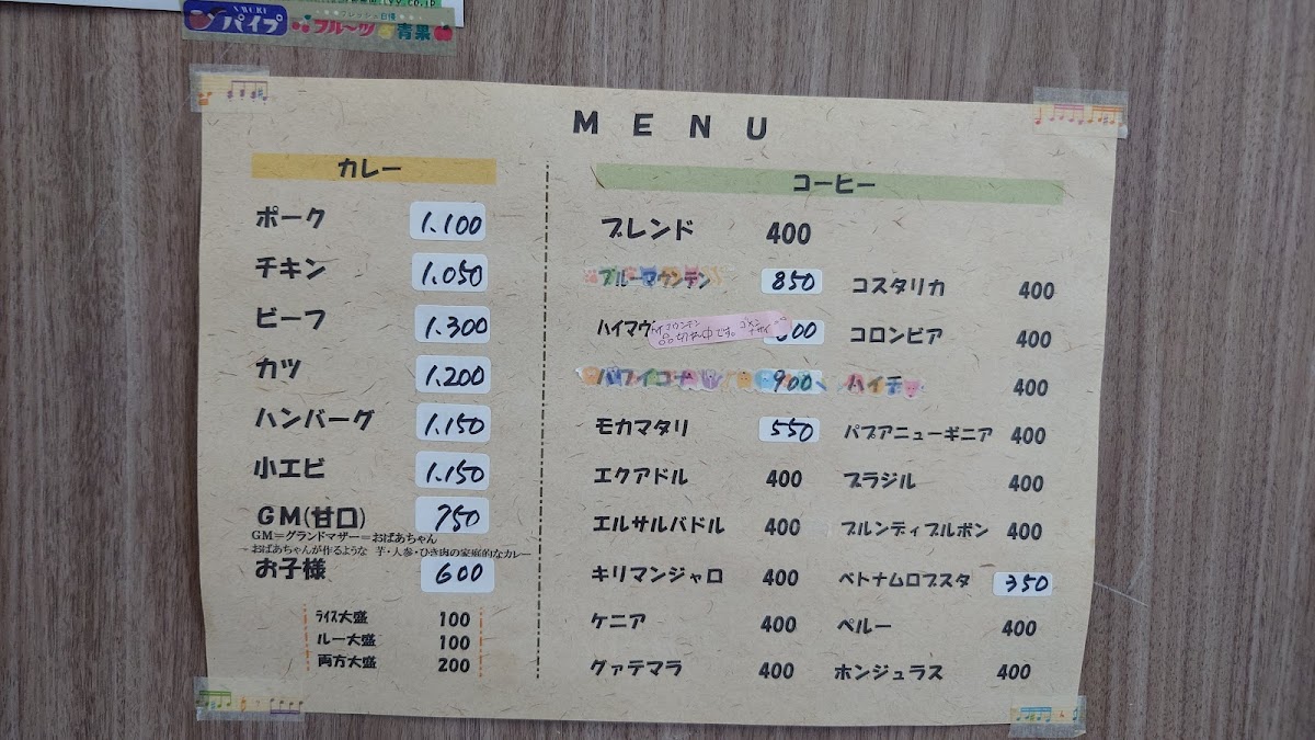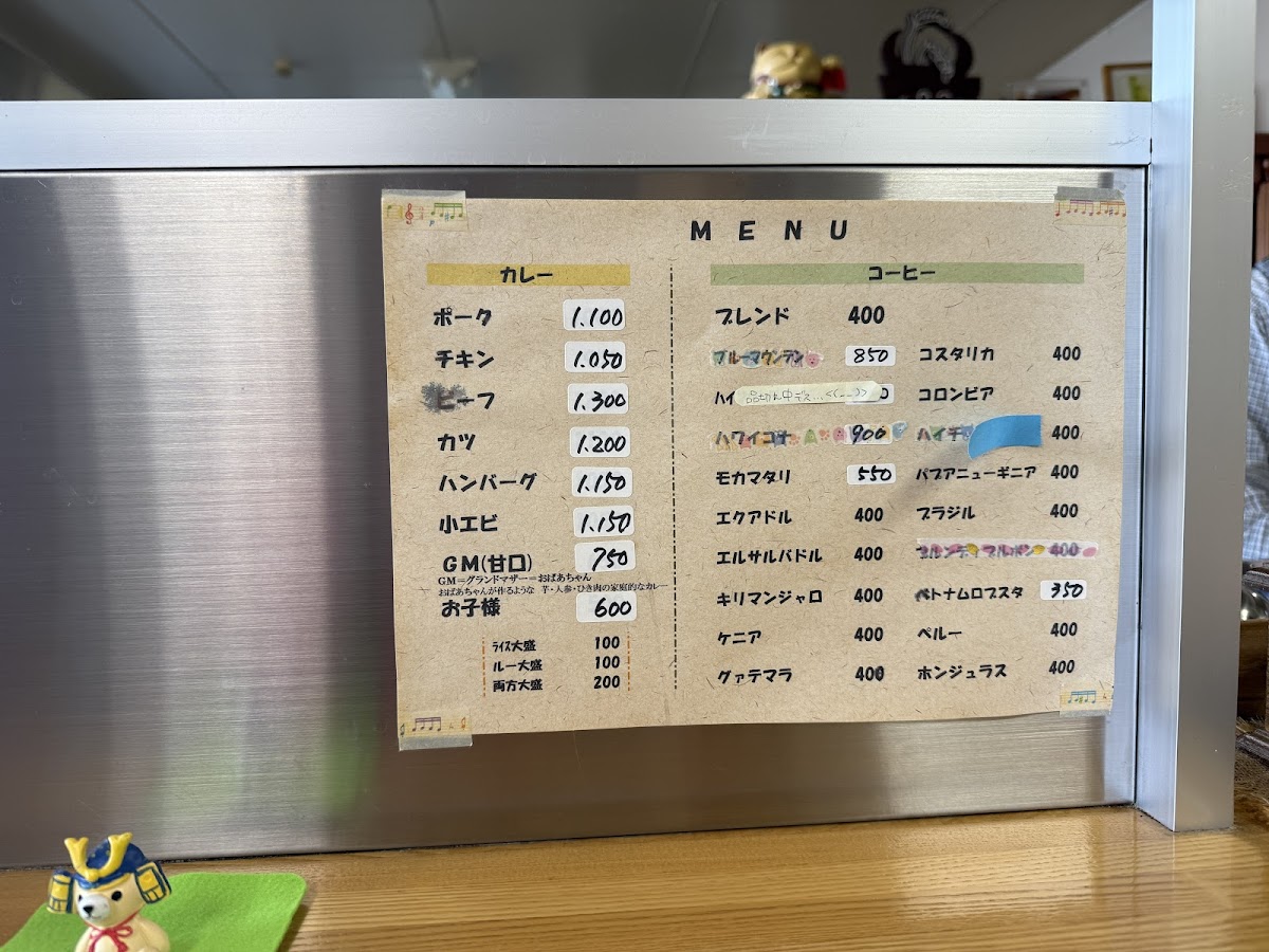If you prefer a more classic Japanese curry, the ポークカレー is an excellent choice, offering a savory and tender pork option in a flavorful curry base. To complement these dishes, the restaurant also serves refreshing beverages like アイスコーヒー (iced coffee) and ブレンド珈琲 (blended coffee), which are ideal for those who want a perfect balance between strong, bold flavors and smooth, refreshing notes.